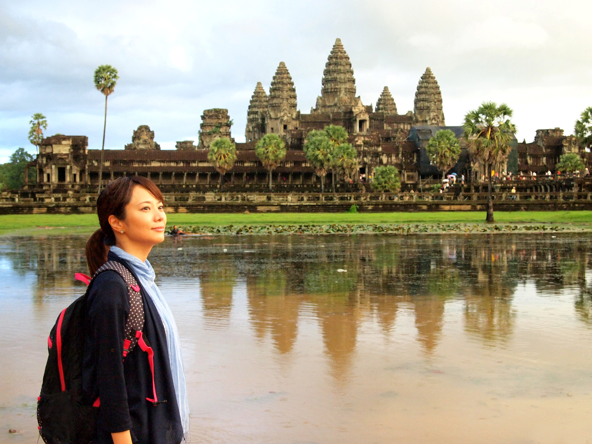 カンボジアのアンコールワットで。「この遺跡が当時の人々の世界観であること、密林の奥深く長い間眠っていたことを知っていると、より感動が深くなります」