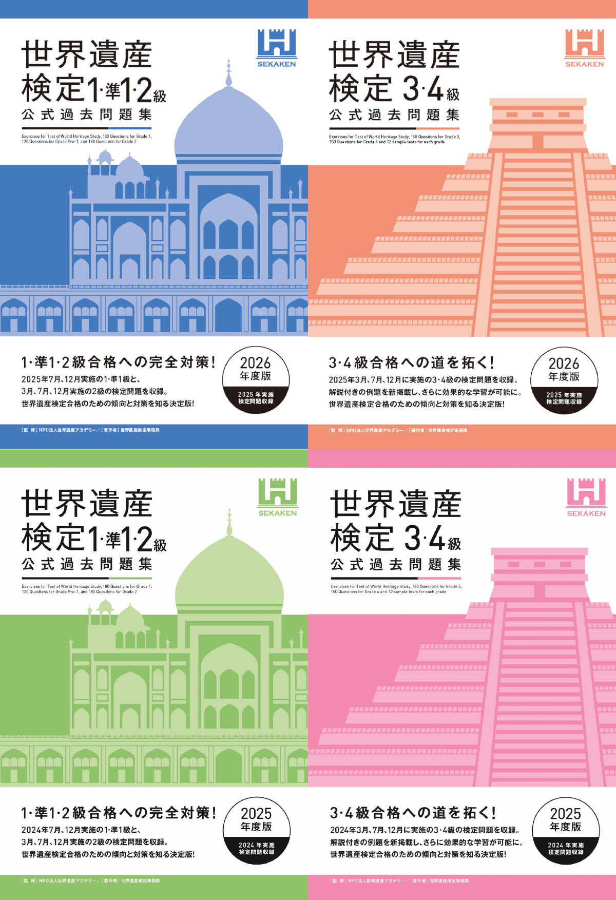 1級から4級の公式テキスト・過去問題集はコチラです。最新の世界遺産に関する資料や訂正情報は各テキストのページ、または下記をご覧ください。