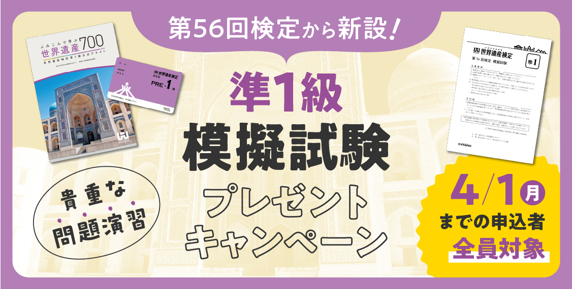 今回から新級となる「準1級」の試験が始まるほか、1級試験は新訂版テキストに準拠した出題となり、公開会場試験の開催都市は19都市から34都市に大幅増設となるなど、より多くの皆様に世界遺産学習の機会を提供し、その魅力と意義を感じていただけるよう、制度や実施体制の変更を行っております。