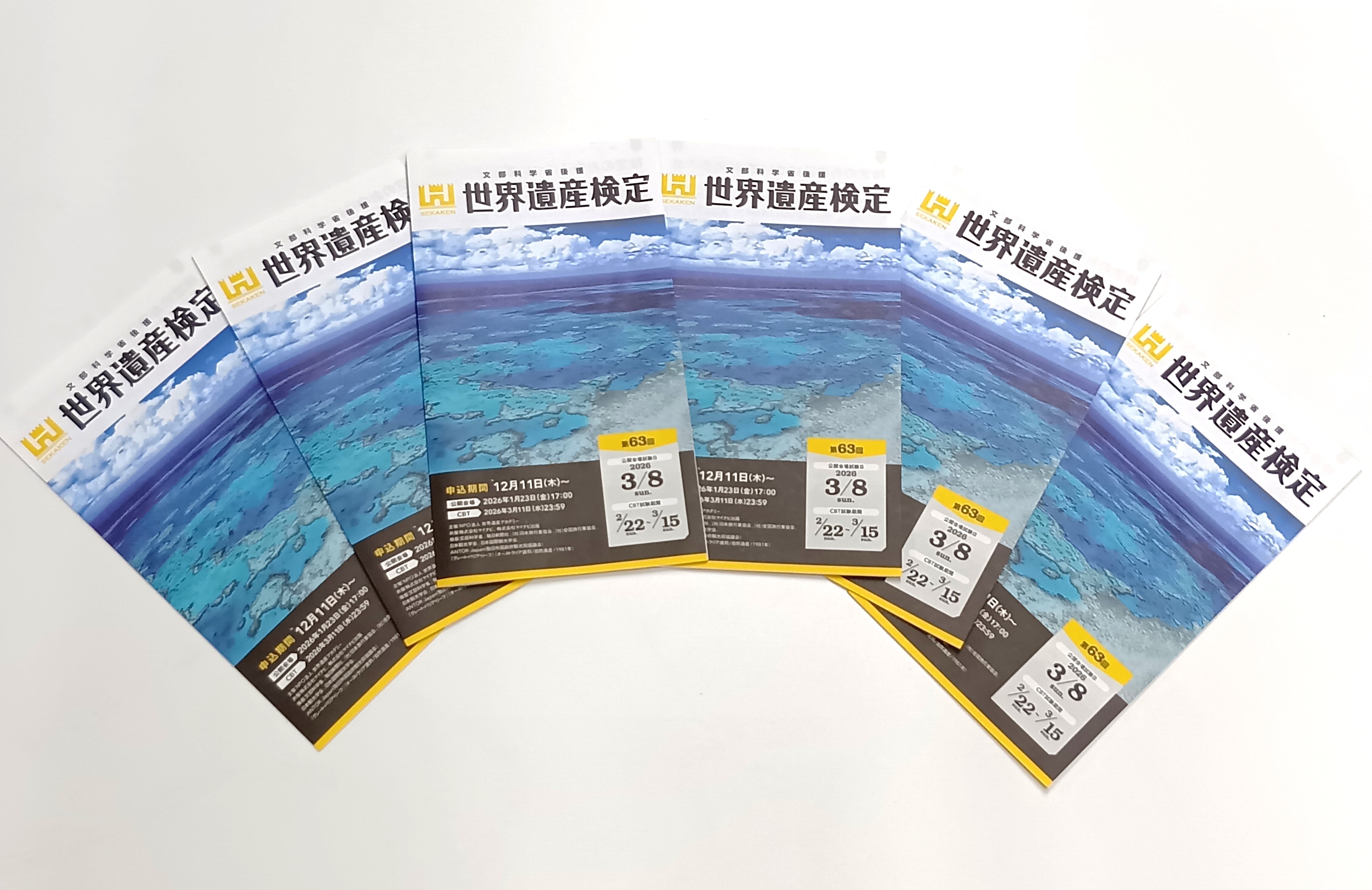 第63回世界遺産検定の申込受付が始まりました。今回のメインビジュアルは『グレート・バリア・リーフ』です。青々とした海に世界最大規模のサンゴ礁が広がる、オーストラリアを代表する自然遺産です。サンゴ以外にもジュゴンなどの絶滅危惧種が生息し、豊かな生態系が見られることでも知られます。