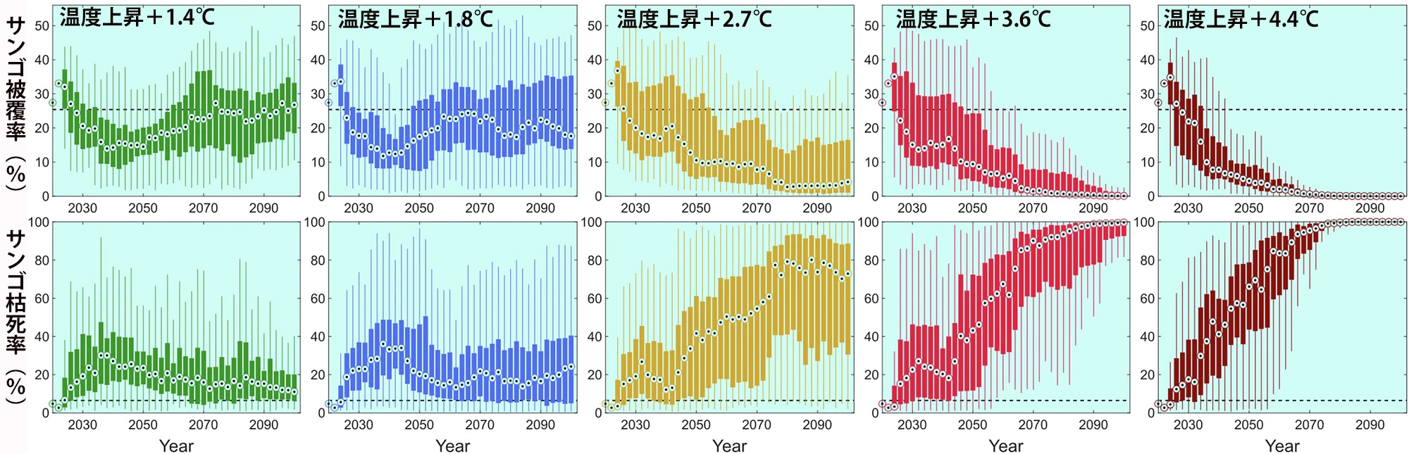 一方で国連の報告書によると、現状のCO2排出量が続けば、今世紀末までに地球の気温が約2.8度上昇する見込みであるとされます。2.8程度気温が上昇した場合、サンゴ礁の回復は起こらず、今世紀末にはサンゴ被覆率は大幅に減少し、わずか4%程度になってしまうと、この論文では指摘しています。 つまりこの研究が示していることは、グレート・バリア・リーフなどの美しいサンゴ礁を守っていくためにも、パリ協定の目標、気温上昇を2℃以下に抑えるとともに、1.5℃に抑える努力を継続することが大事だということです。世界各国において更なるCO2排出量削減の取り組みが求められます。