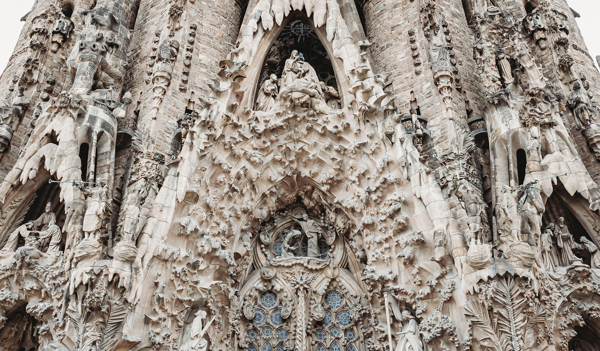 そうしたガウディらしさが遺憾なく現れているのが、もう1カ所の界遺産に登録されている「生誕のファサード」です。これは曲線を多用し、うねりながら上昇するような、エネルギーに溢れた設計。ガウディ以外には考えつかないような独創性に満ちたデザインです。